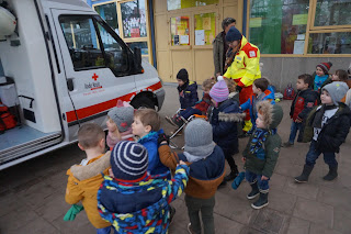 Op woensdag kwam er een echte ziekenwagen onze speelplaats opgereden.We waren onder de indruk. In de turnzaal leerde een echte dokter hoe je iemand moet onderzoeken. Dankuwel papa van Camille voor dit superleuke initiatief.